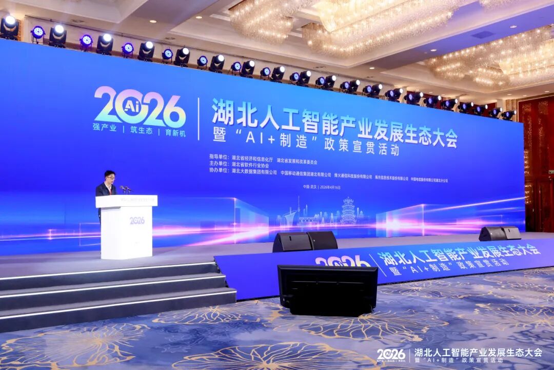 '4月16日,2026湖北人工智能产业发展生态大会在武汉隆重举行。本次大会由由湖北省经济和信息化厅、湖北省发展和改革委员会指导,湖北省软件行业协会主办,汇聚了政府主管部门、行业专家、领军企业及生态合作伙伴,共话产业发展新趋势,共筑湖北AI生态协同发展新格局。作为深耕数字政务与医疗领域15年的国家高新技术企业,武汉星际互动智能技术有限公司(以下简称“星际互动”)受邀参加,并携多项AI赋能的政务服务创新成果与系统解决方案亮相大会展区。'